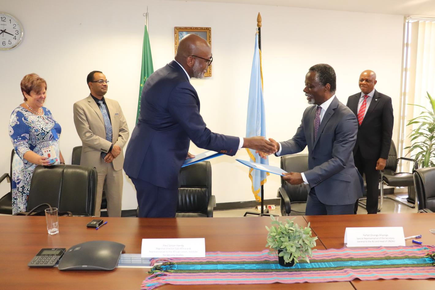 On 16 November, SRSG to the AU and Head of UNOAU met with Dr. Paul-Simon Handy, the Regional Director for East Africa and Representative to the AU of the Institute of Security Studies (ISS). During the meeting, they signed a…