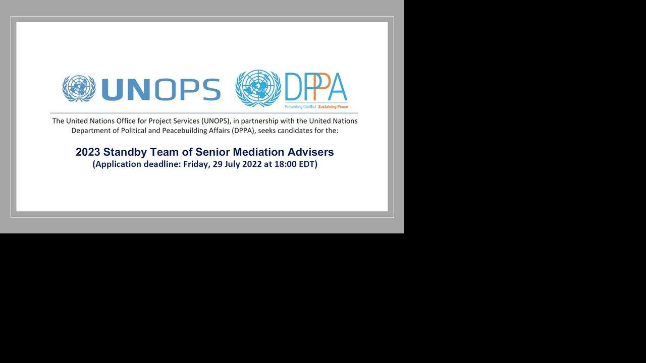 DPPA and UNOPS seek applicants with significant mediation experience and a wide range of regional knowledge, technical skills and language abilities. All applicants are expected to have some mediation process design skills, and are required to demonstrate competence in mainstreaming gender into their work. Women are particularly encouraged to apply. Speakers of Arabic and French are also strongly encouraged to apply.