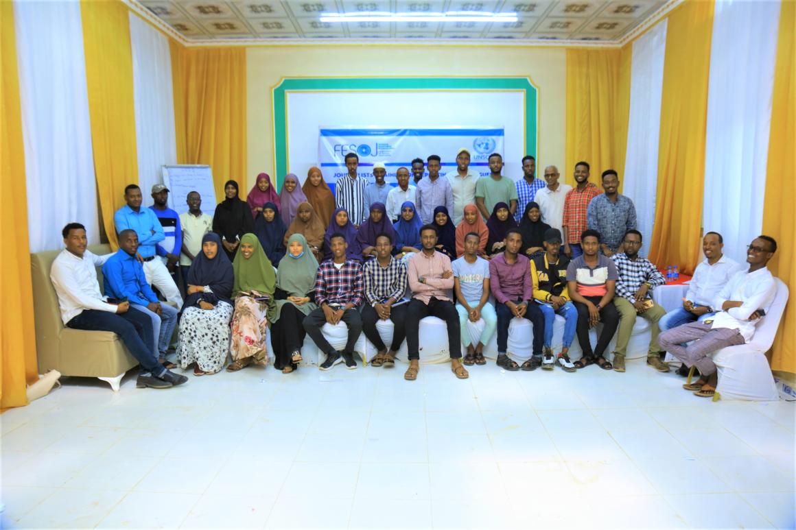 UNSOM’s support to FESOJ has centred on training journalists around the country on areas ranging from hands-on skills such as news writing and video camera operations, to more thematic areas of reporting such as electoral processes, women's political participation, freedom of expression, climate change, and issues affecting youth, women and marginalized groups.